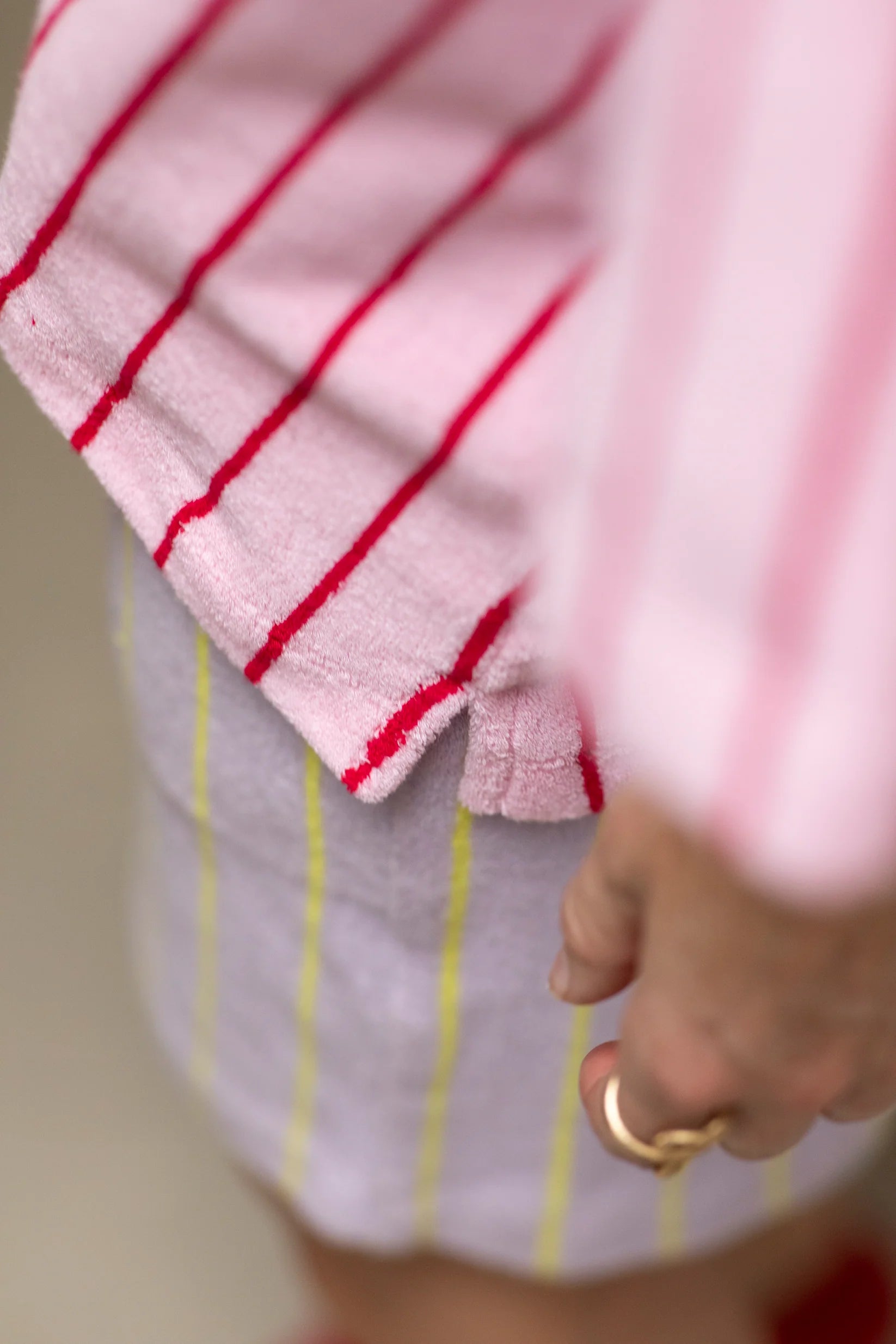 Skjorten fås i vores signaturfarver og klassiske striber og kommer i den blødeste strikkede frottébomuld, som er 100% økologisk og OEKO-TEX®-certificeret. Det absorberende bomuldsfrotté leder fugt hurtigt væk om sommeren, men holder dig også varm og stilfuld i køligere vejr.