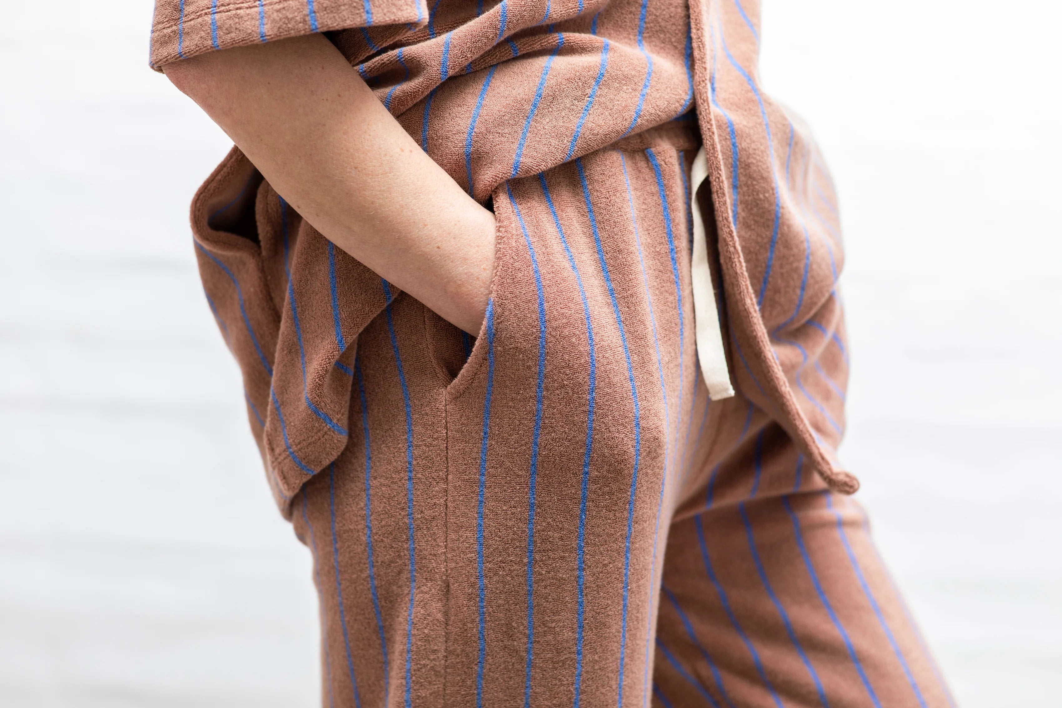 Med al casualwear er komfort høj prioritet, og det er her, Naram Bukser udmærker sig. De er lavet i den blødeste økologiske bomuldsfrotté, som leder fugt hurtigt væk om sommeren, mens stoffet samtidig holder dig varm og stilfuld i køligere vejr.
