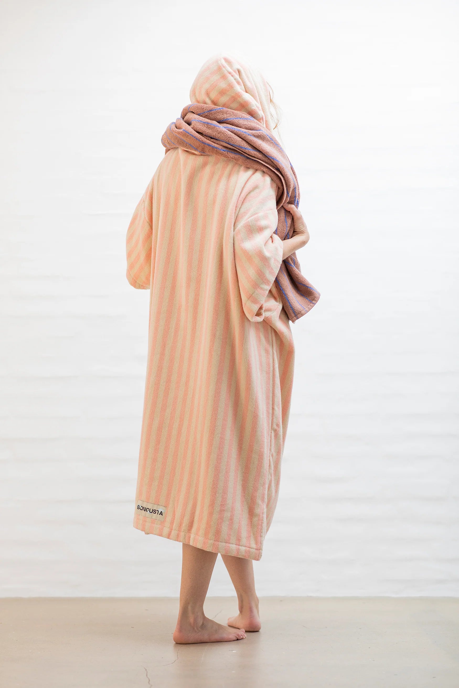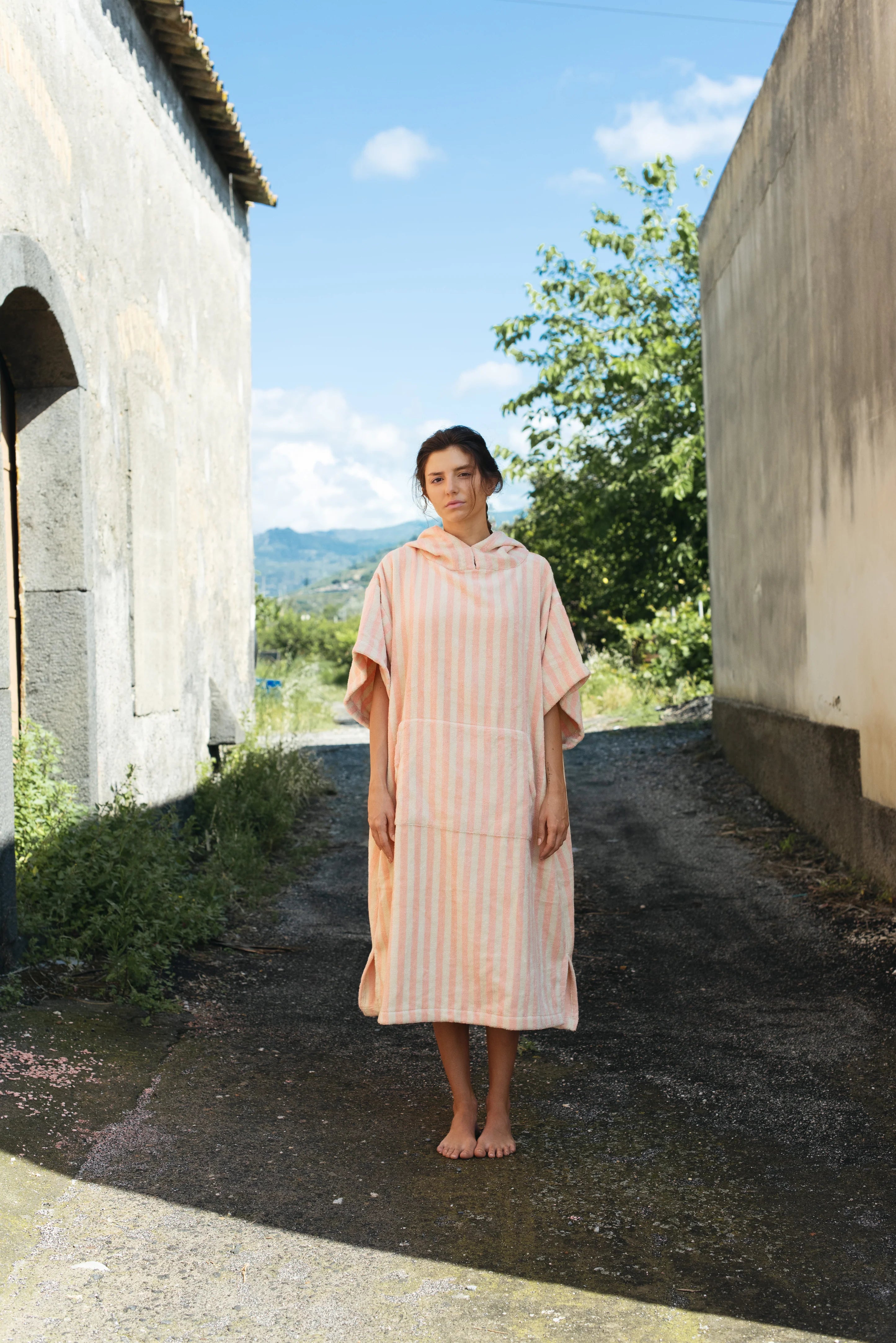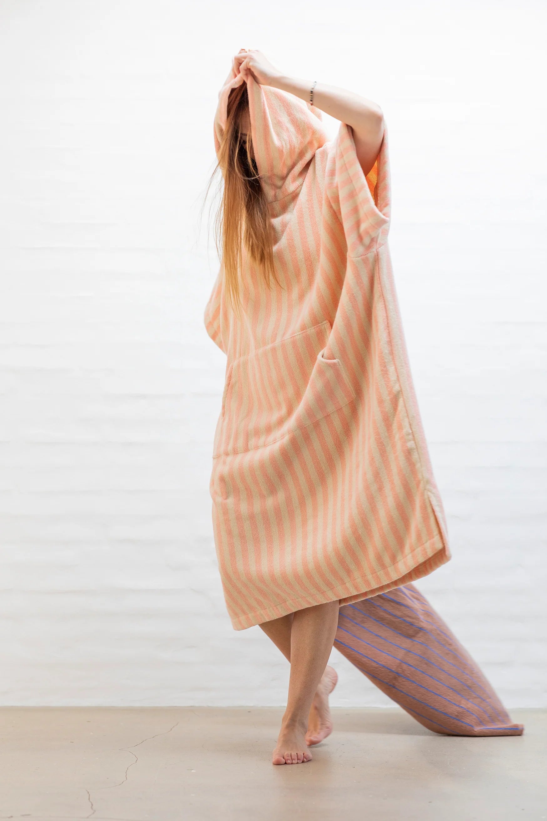 Inspireret af surf-verdenens afslappede vibes er Naram Poncho omhyggeligt fremstillet af 100% kæmmet bomuld (385-gsm). Den er dobbeltvævet for høj sugeevne og en blød, luksuriøs følelse hver gang du tager den på.