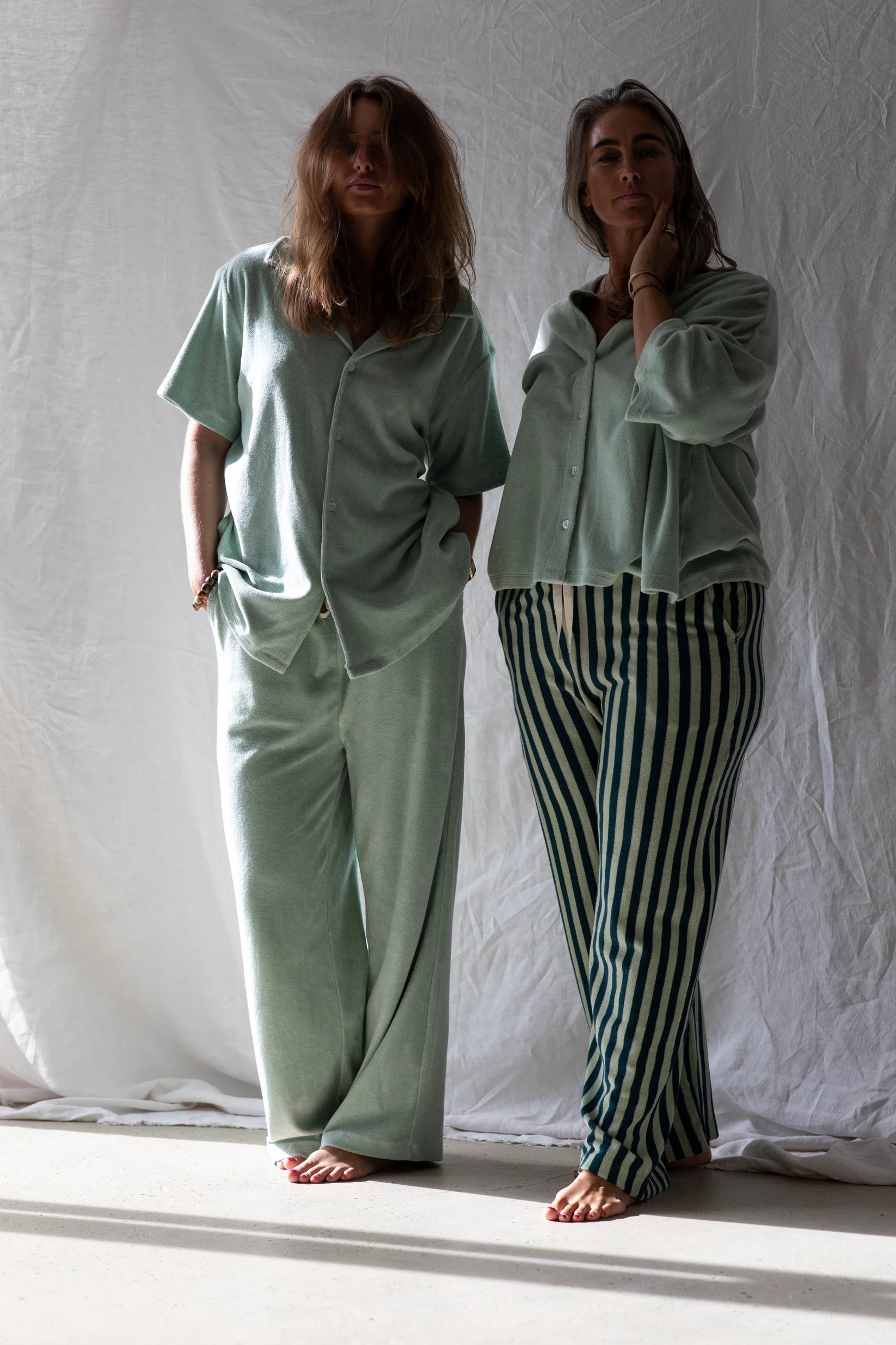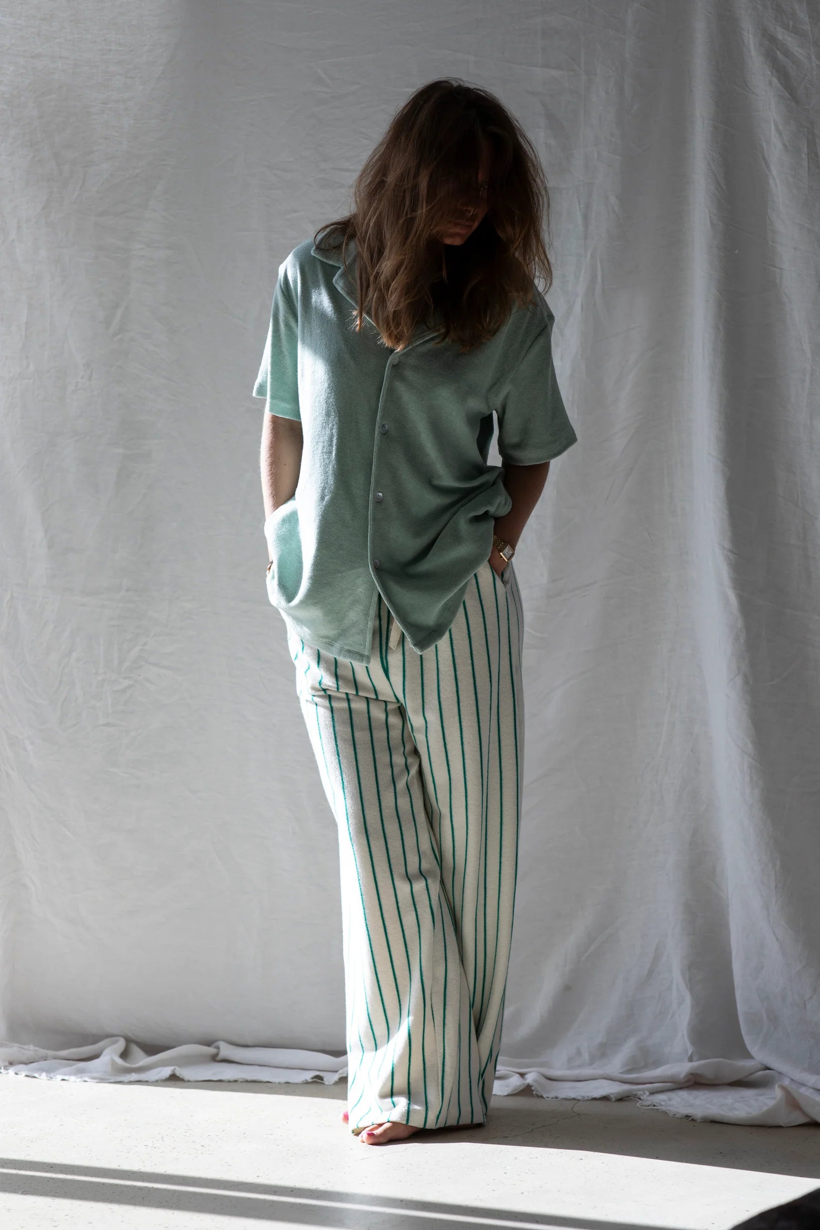 Skjorten har en cubansk krave, korte ærmer og fine perlemorsknapper, og fås i både signaturfarver og tidløse striber.