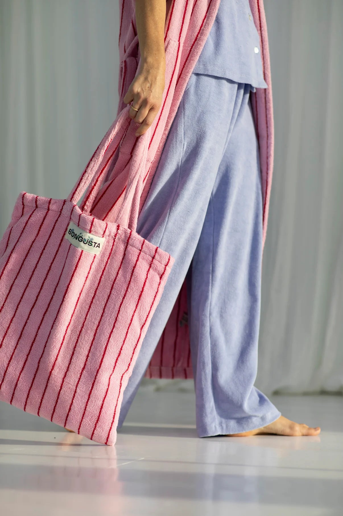 Naram Totebag er lavet af 100% økologisk bomuld og er OEKO-TEX® Made in Green-certificeret. Tasken har et stort rum – perfekt til hverdagsbrug – og fås i alle vores Bongusta signaturfarver og striber.