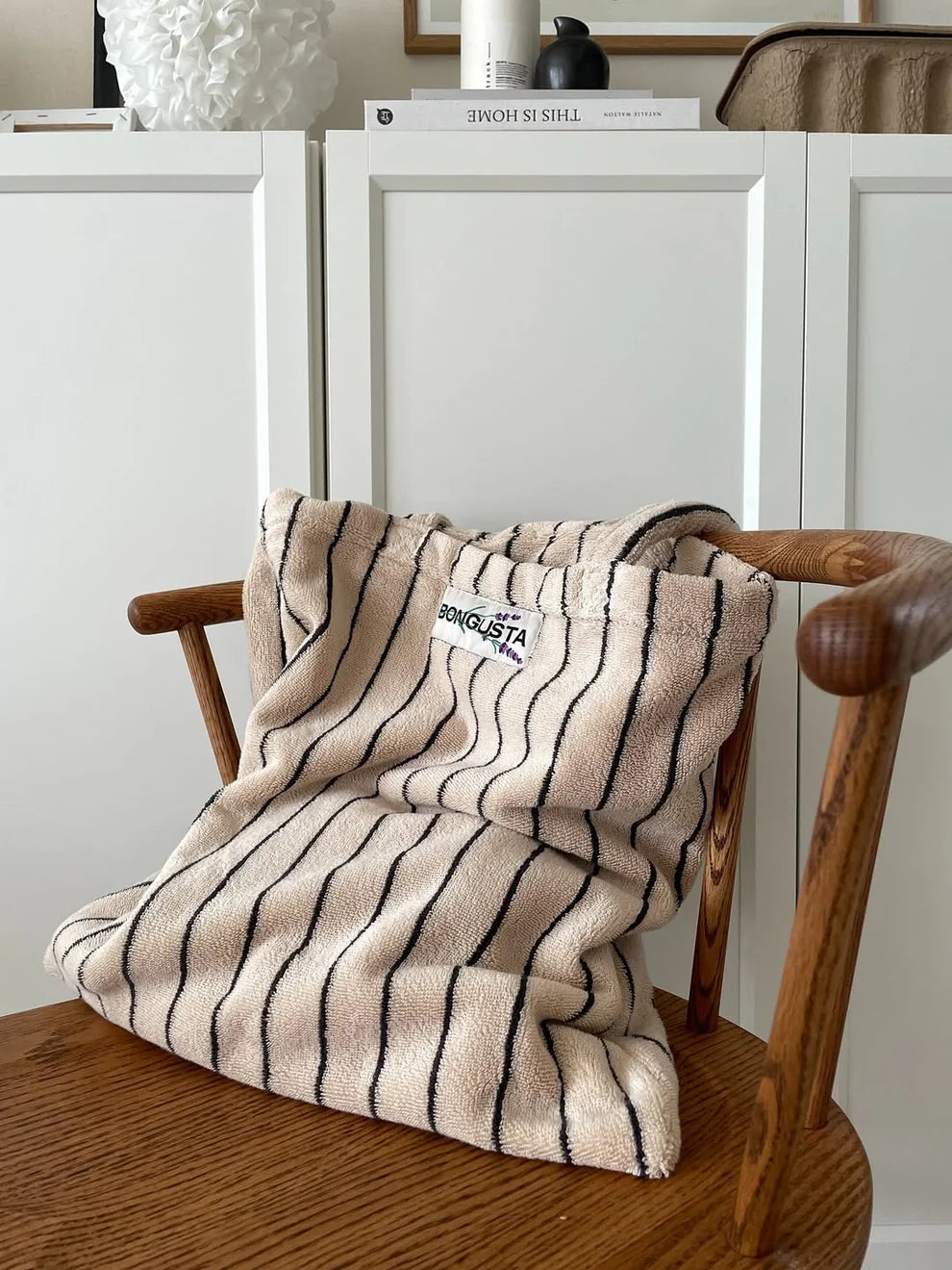 Naram Totebag er lavet af 100% økologisk bomuld og er OEKO-TEX® Made in Green-certificeret. Tasken har et stort rum – perfekt til hverdagsbrug – og fås i alle vores Bongusta signaturfarver og striber.