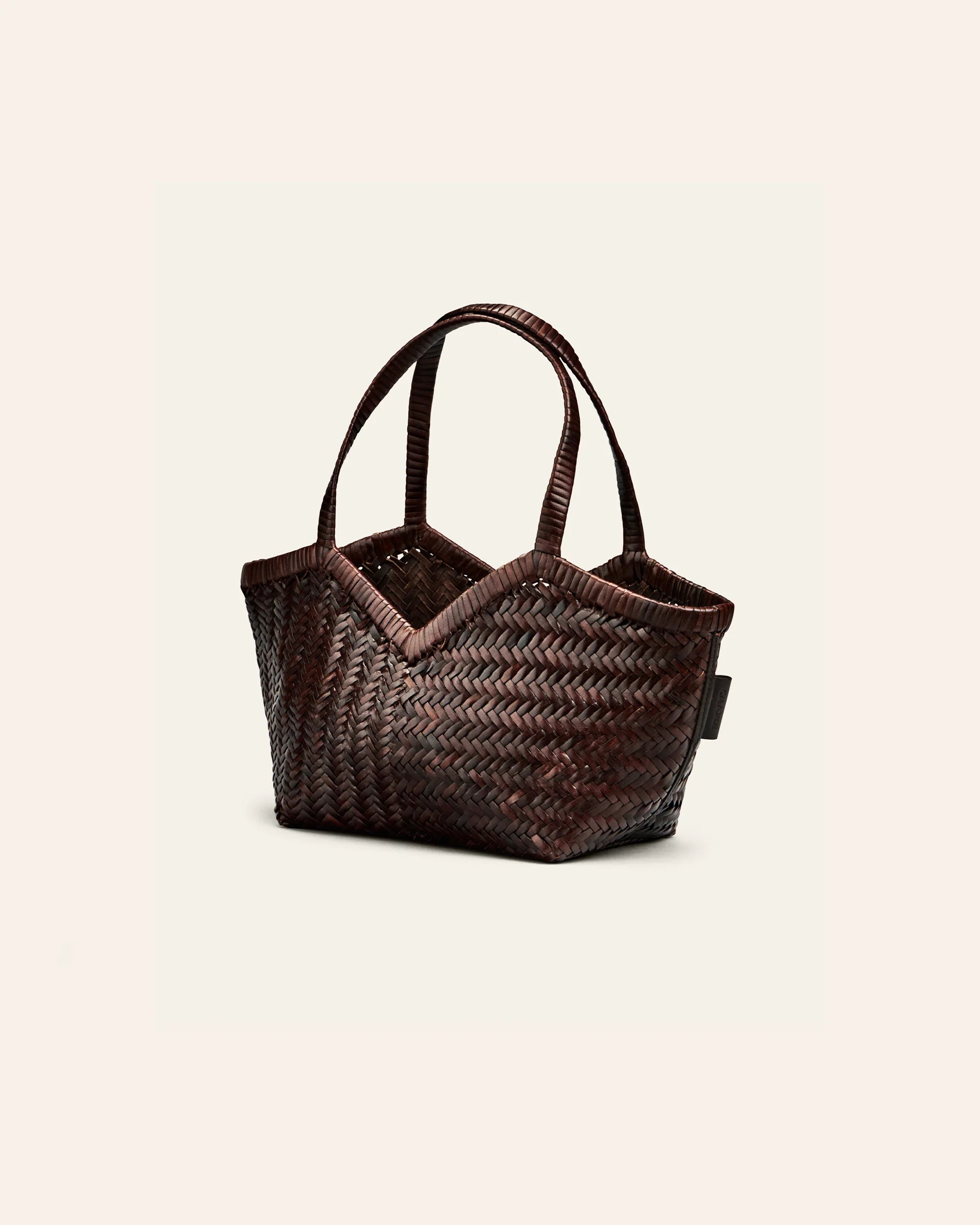 HUMI er en rummelig lædertaske, designet som et praktisk valg til arbejde, rejser eller hverdagsbrug. Den er håndflettet i bøffellæder og har et elegant V-formet snit foroven og slanke stropper, der sidder behageligt på skulderen.