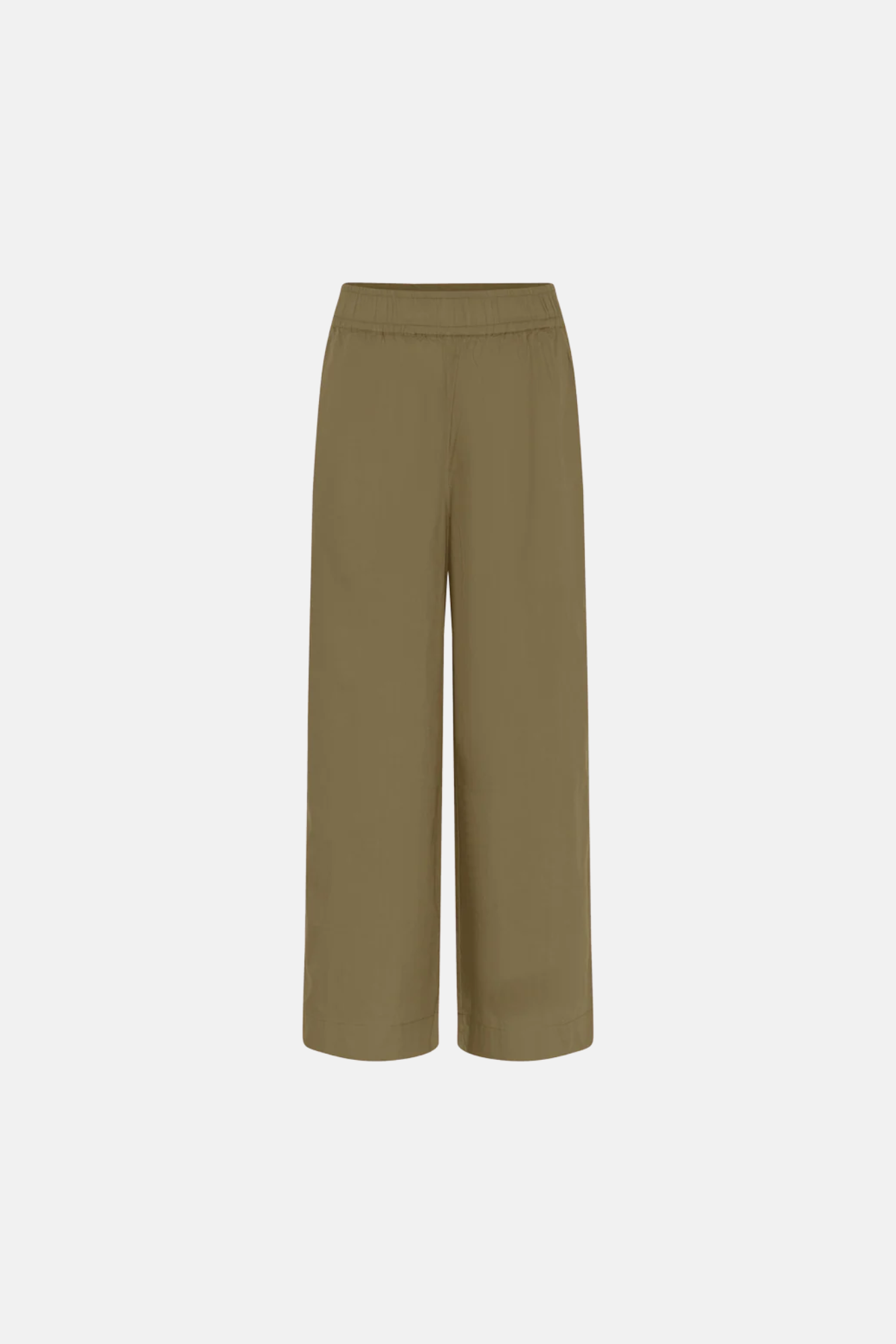 Copenhagen ankelbuks er en enkel og stilren buks med bred elastik i taljen, praktiske usynlige sidelommer og et benforløb med vidde, der giver et afslappet og moderne udtryk.