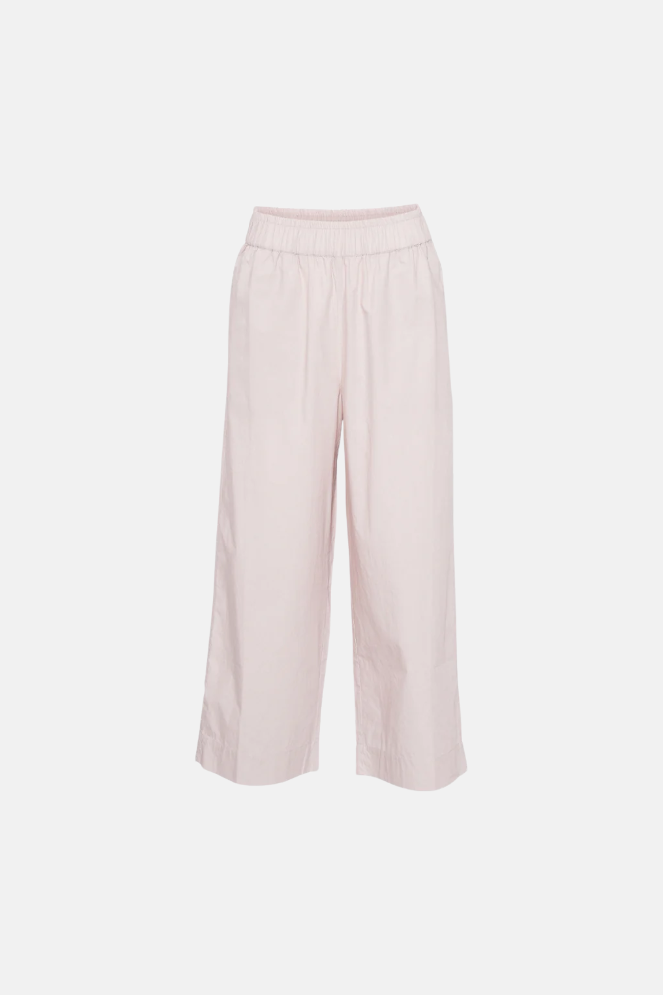 Copenhagen ankelbuks er en enkel og stilren buks med bred elastik i taljen, praktiske usynlige sidelommer og et benforløb med vidde, der giver et afslappet og moderne udtryk.