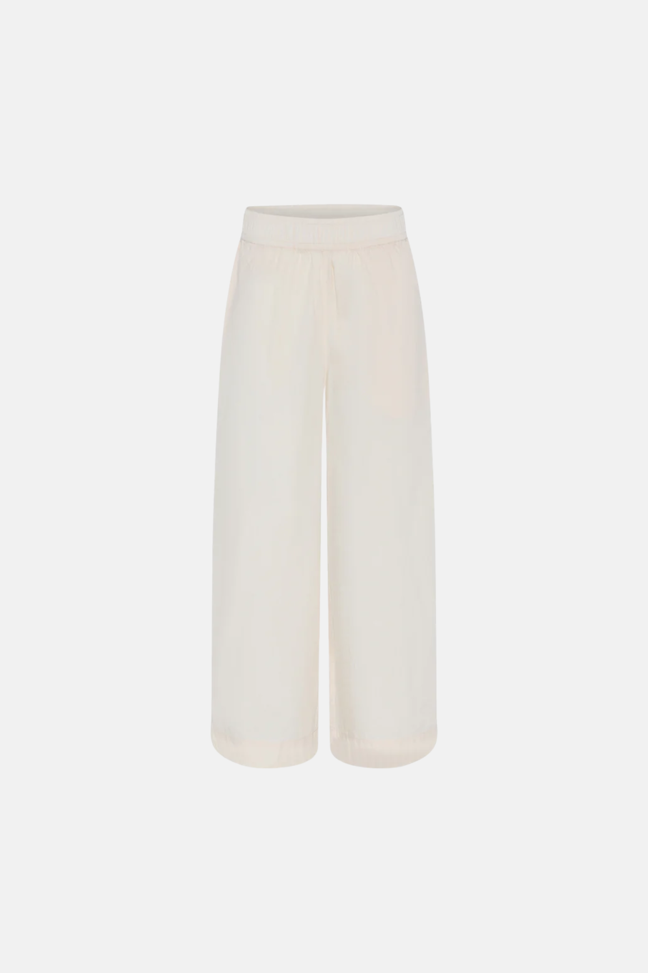Copenhagen ankelbuks er en enkel og stilren buks med bred elastik i taljen, praktiske usynlige sidelommer og et benforløb med vidde, der giver et afslappet og moderne udtryk.