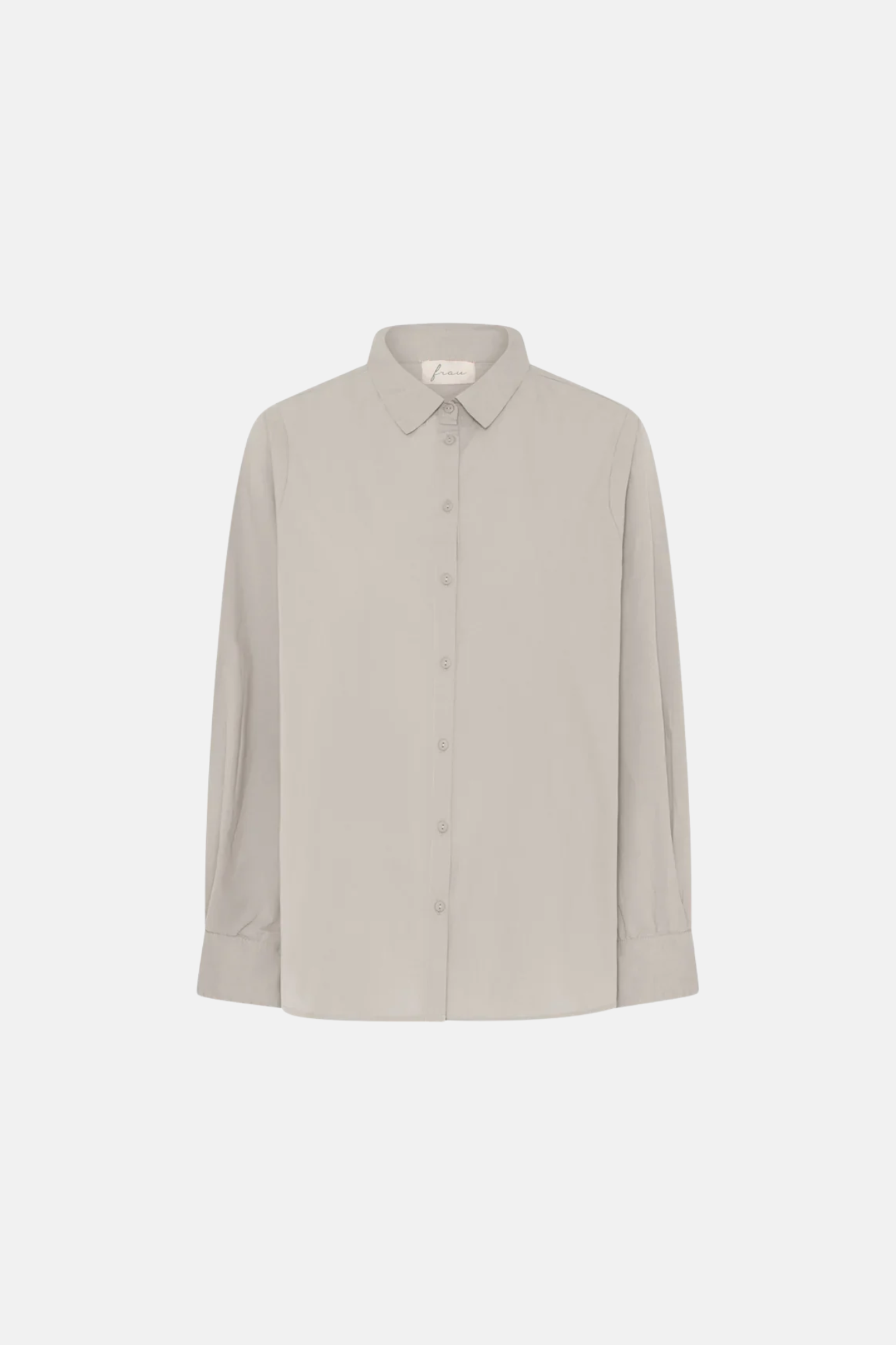 Dhaka skjorte er en klassisk langærmet basisskjorte med en lille krave og gennemknappet stolpelukning. Foden runder skjorten let og giver et fint og blødt udtryk.