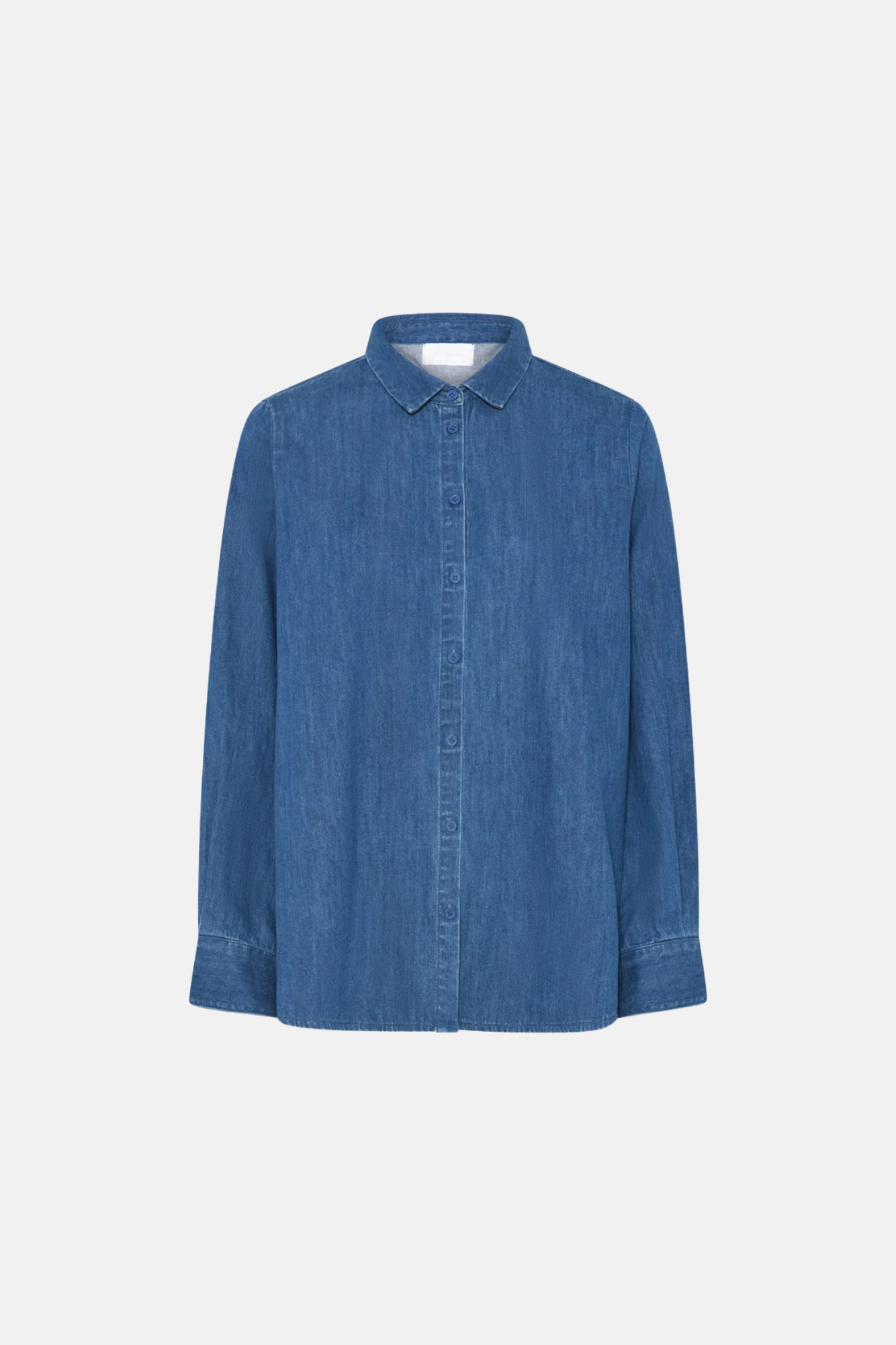 Dhaka skjorte er en klassisk langærmet basisskjorte med en lille krave og gennemknappet stolpelukning. Foden runder skjorten let og giver et fint og blødt udtryk.
