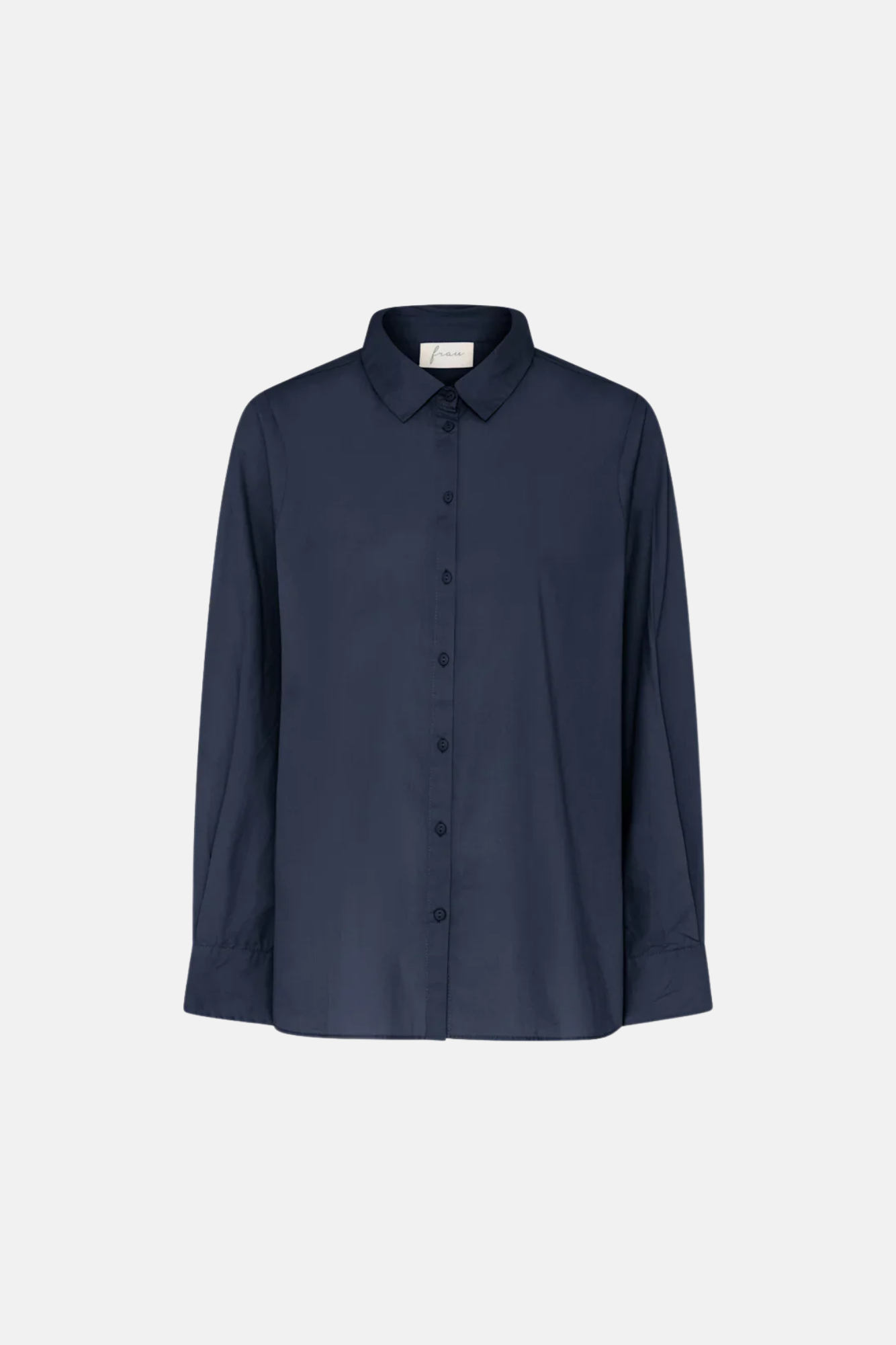 Dhaka skjorte er en klassisk langærmet basisskjorte med en lille krave og gennemknappet stolpelukning. Foden runder skjorten let og giver et fint og blødt udtryk.