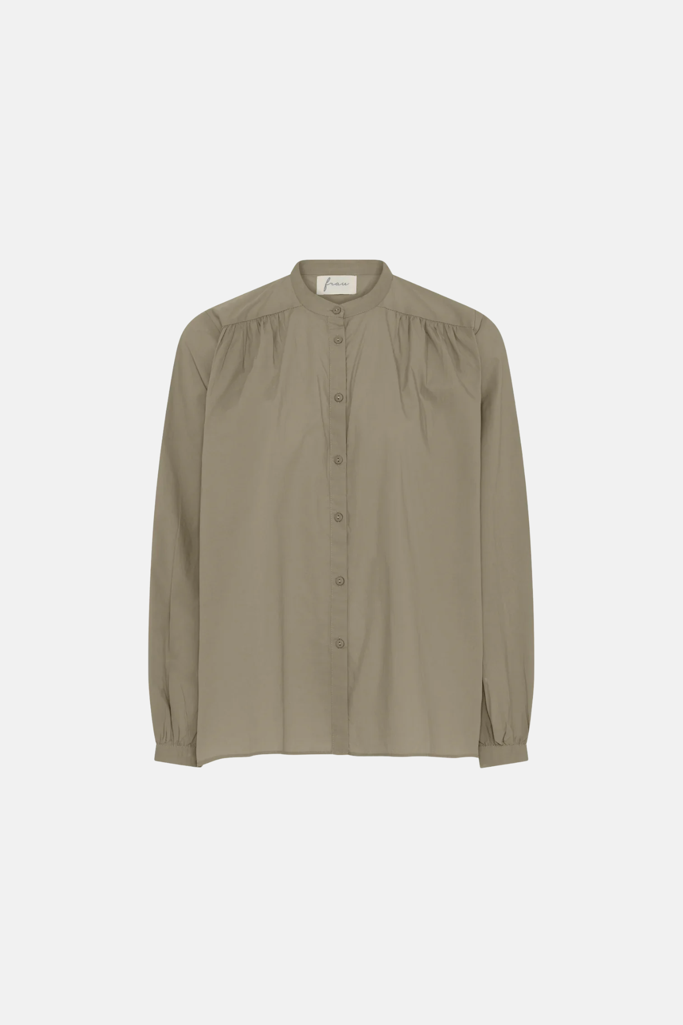 Florence skjorte har lange ærmer, kinakrave og feminine rynker ved skulderskæringen og på ryggen. Ved ærmerne har den også lidt feminint rynk.