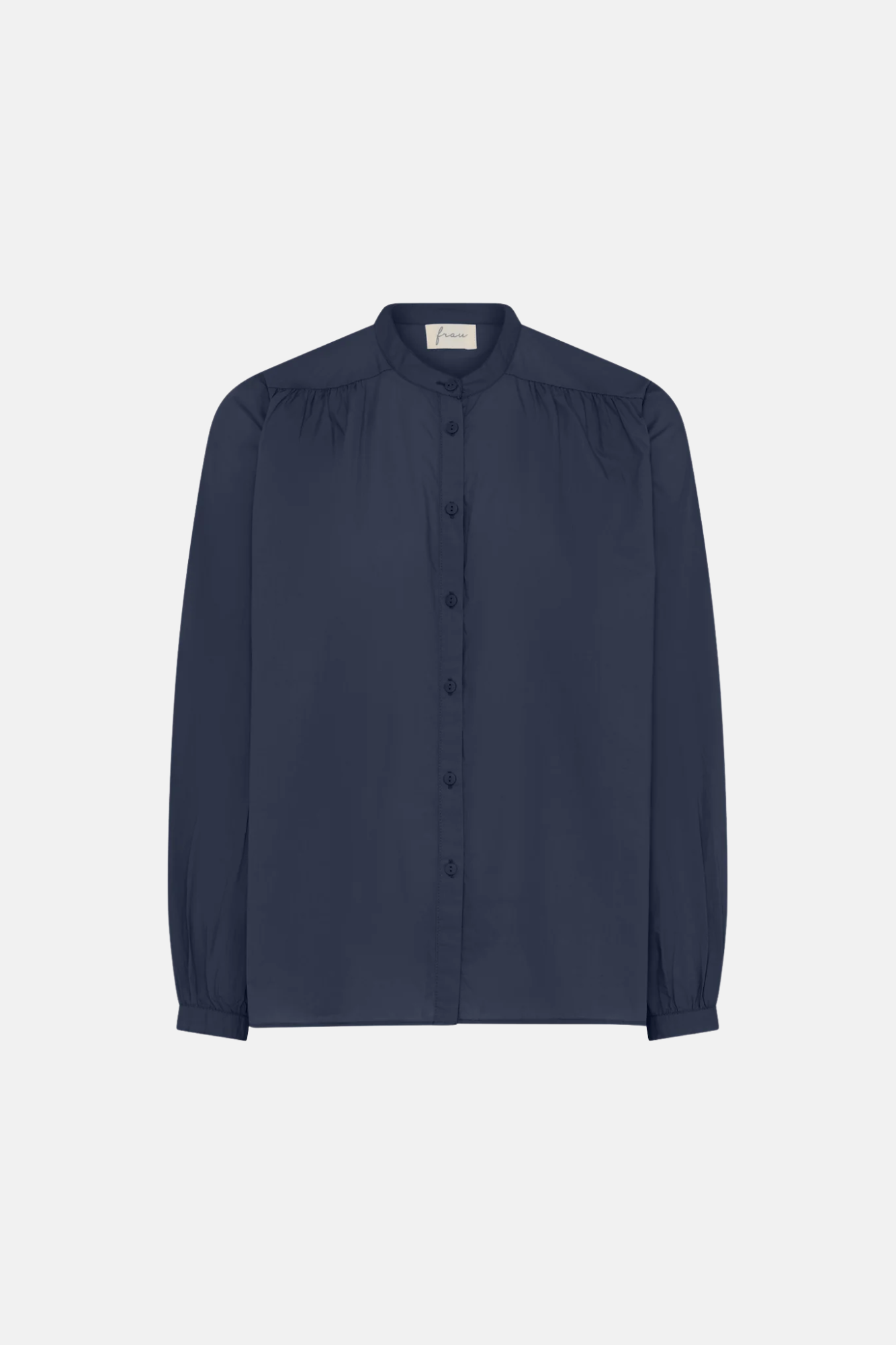 Florence skjorte har lange ærmer, kinakrave og feminine rynker ved skulderskæringen og på ryggen. Ved ærmerne har den også lidt feminint rynk.