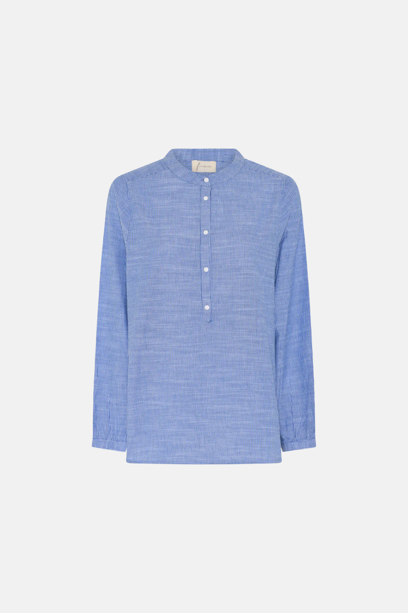 Madrid skjorte er en absolut favorit – året rundt. En langærmet basic model med kinakrave og halv stolpelukning. Forneden runder skjorten let og giver et fint og blødt udtryk. På ryggen er en lav skæring med et enkelt læg.