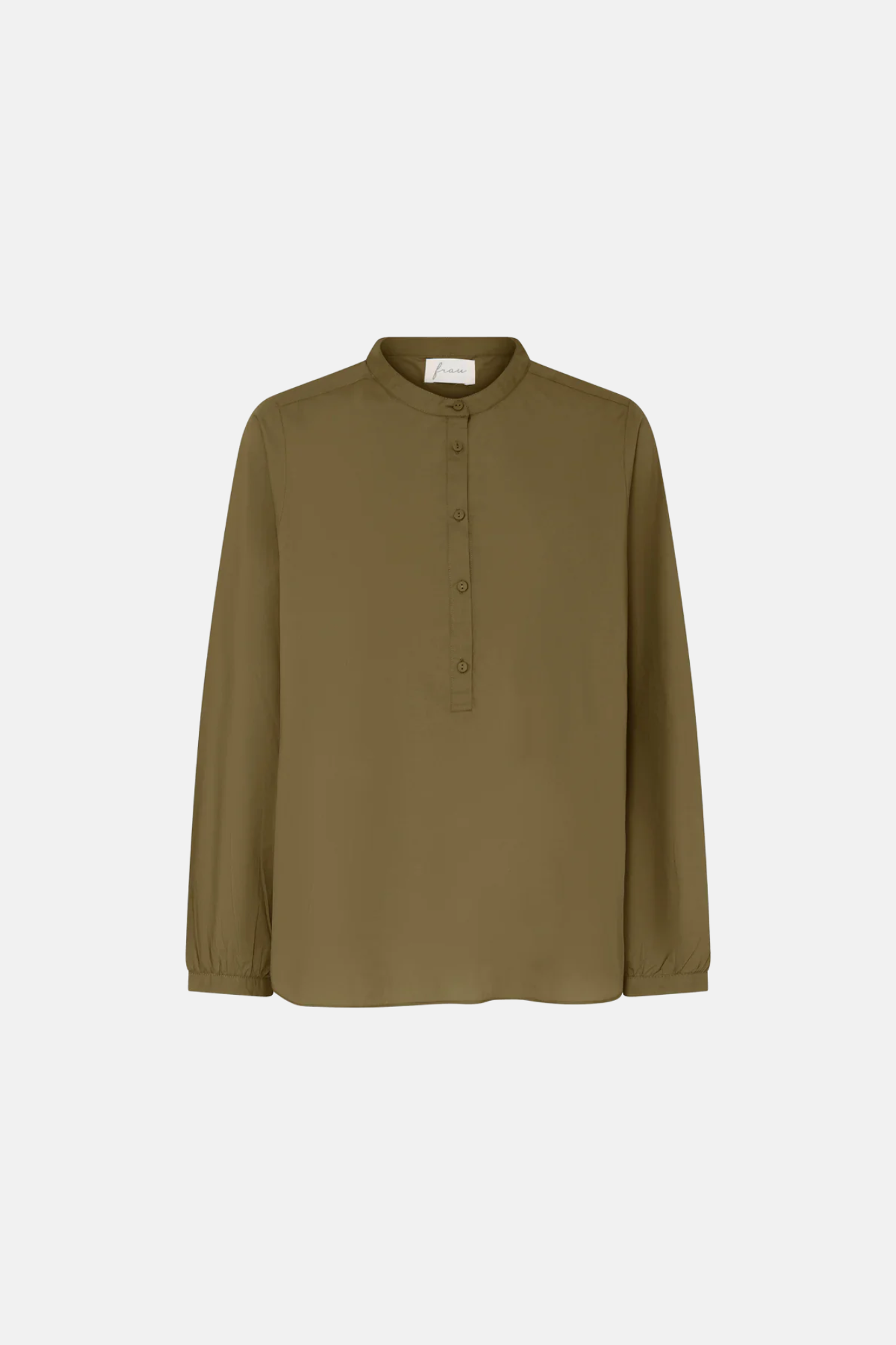 Madrid skjorte er en absolut favorit – året rundt. En langærmet basic model med kinakrave og halv stolpelukning. Forneden runder skjorten let og giver et fint og blødt udtryk. På ryggen er en lav skæring med et enkelt læg.