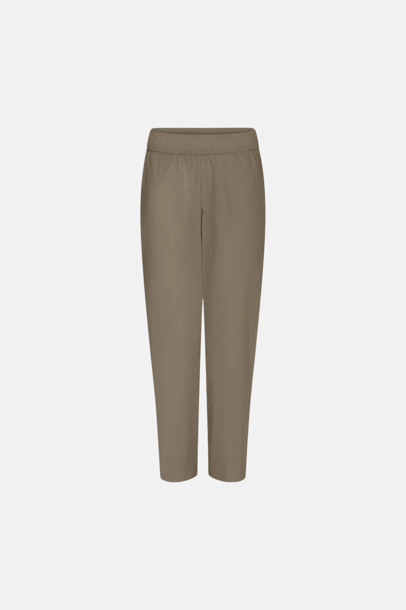Oslo ankelbuks er en klassisk og simpel buks med bred elastik i taljen, usynlige sidelommer og et smalt benforløb.