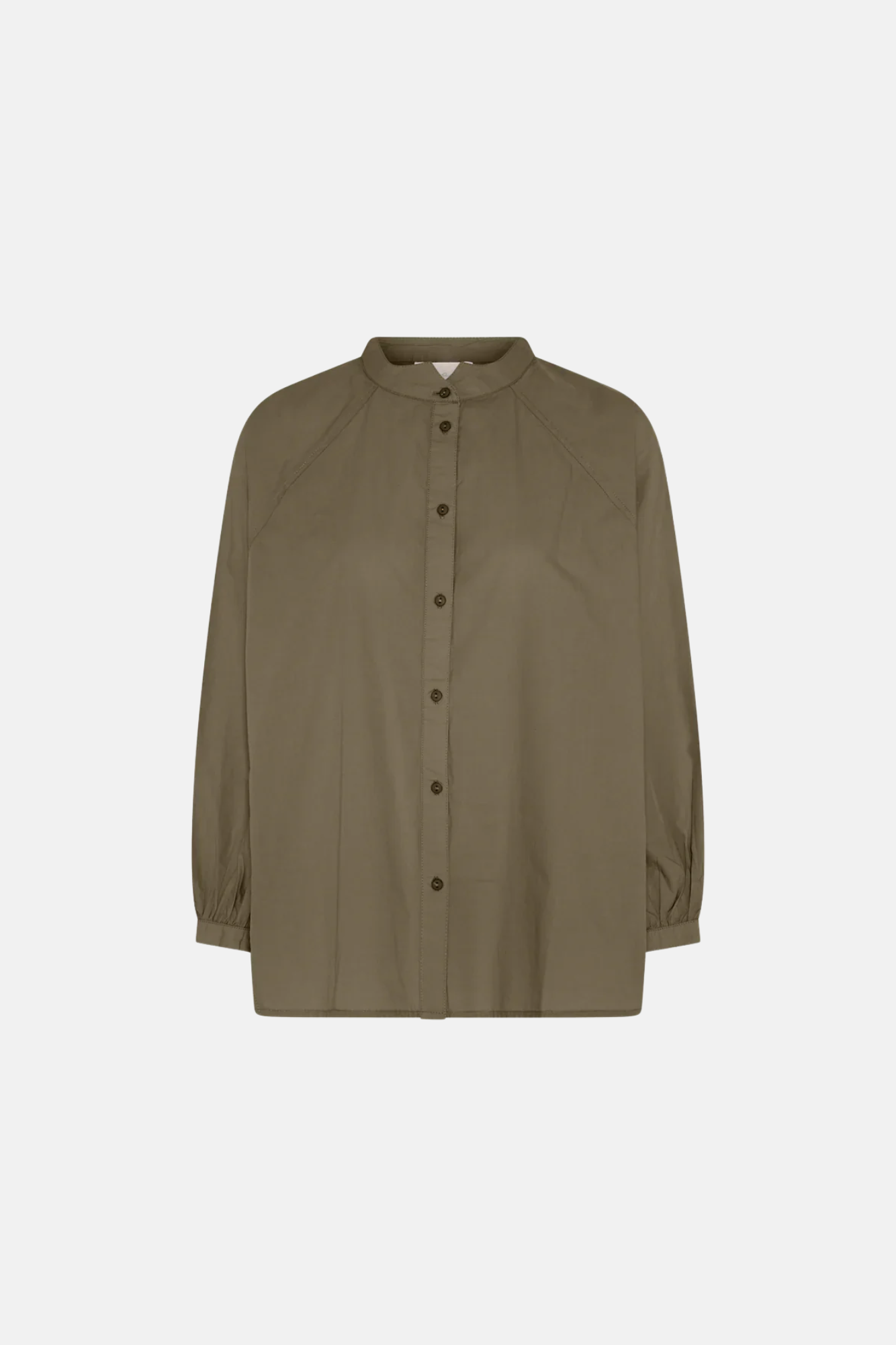 Tokyo skjorten i den korte udgave har raglanærmer og masser af volume. Den er gennemknappet og kan anvendes både lukket og åben. Den lille fine kravedetalje kan stå oprejst eller presses fint ned.