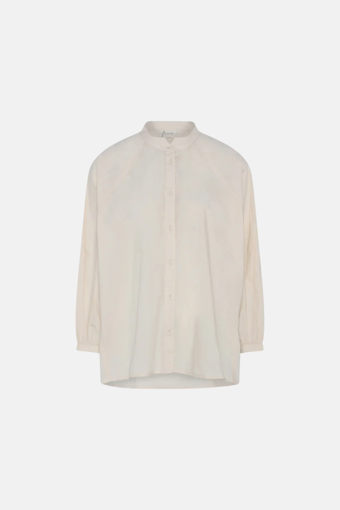 Tokyo skjorten i den korte udgave har raglanærmer og masser af volume. Den er gennemknappet og kan anvendes både lukket og åben. Den lille fine kravedetalje kan stå oprejst eller presses fint ned.