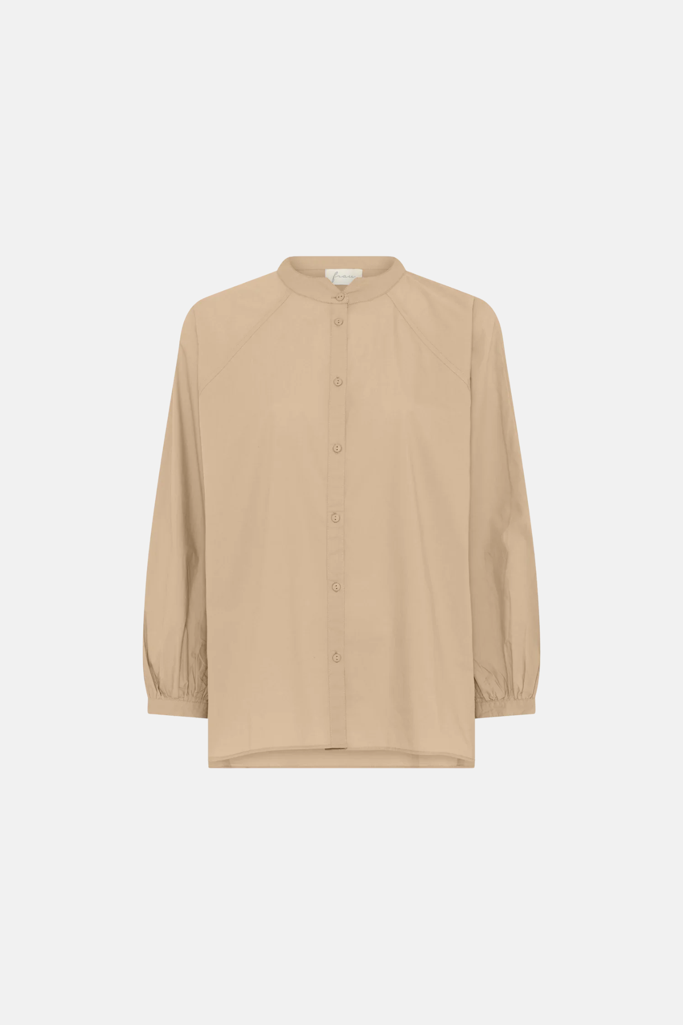 Tokyo skjorten i den korte udgave har raglanærmer og masser af volume. Den er gennemknappet og kan anvendes både lukket og åben. Den lille fine kravedetalje kan stå oprejst eller presses fint ned.