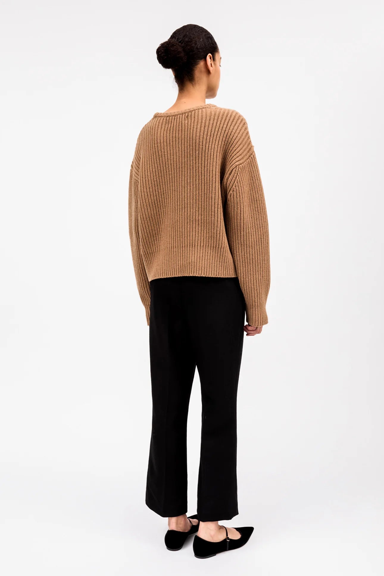 Diana Round Neck er en blød, afslappet sweater med rund hals, strikket i 100% uld. Den er ribstrikket med dobbelt ribkant ved halsen, lav skuldersøm og let voluminøse ærmer. Fine formstrikkede detaljer ved halsudskæringen foran og bagpå giver et diskret og luksuriøst udtryk.