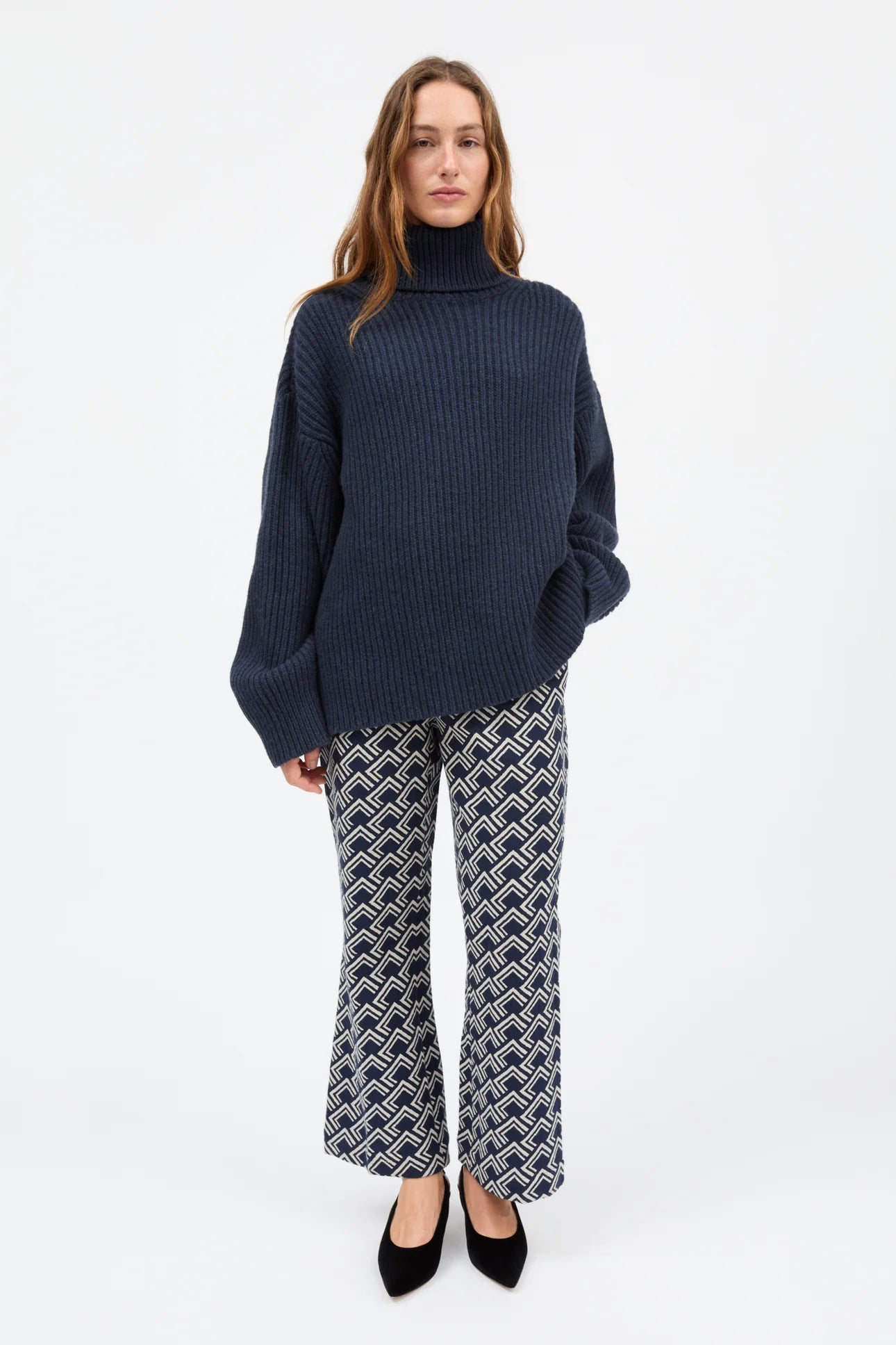 Diana Turtle Neck Jumper er en varm og elegant sweater i kraftig ribstrik med høj, foldet rullekrave. Strikket i 100% uld med afslappet pasform og lige ærmer. Diskrete formstrikkede detaljer ved halsen giver et raffineret finish og understreger det tidløse udtryk.