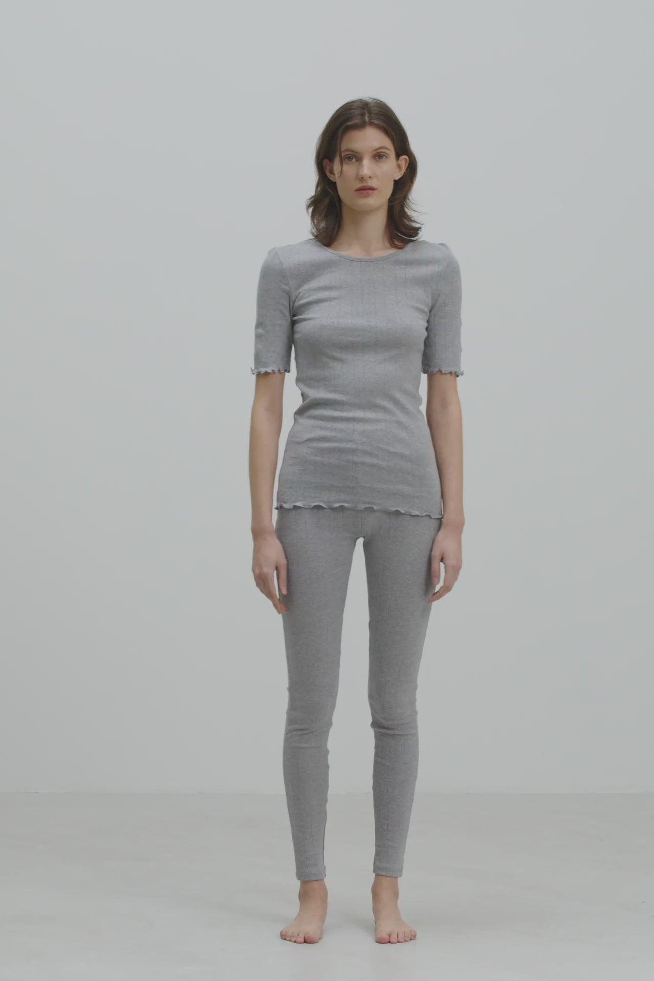 Med sine elegante detaljer som rund hals og korte ærmer er Edie Tee både alsidig og sofistikeret. Den tætsiddende pasform smyger sig perfekt til kroppen, hvilket gør den ideel til både hverdagsbrug og mere stilfulde sammensætninger.