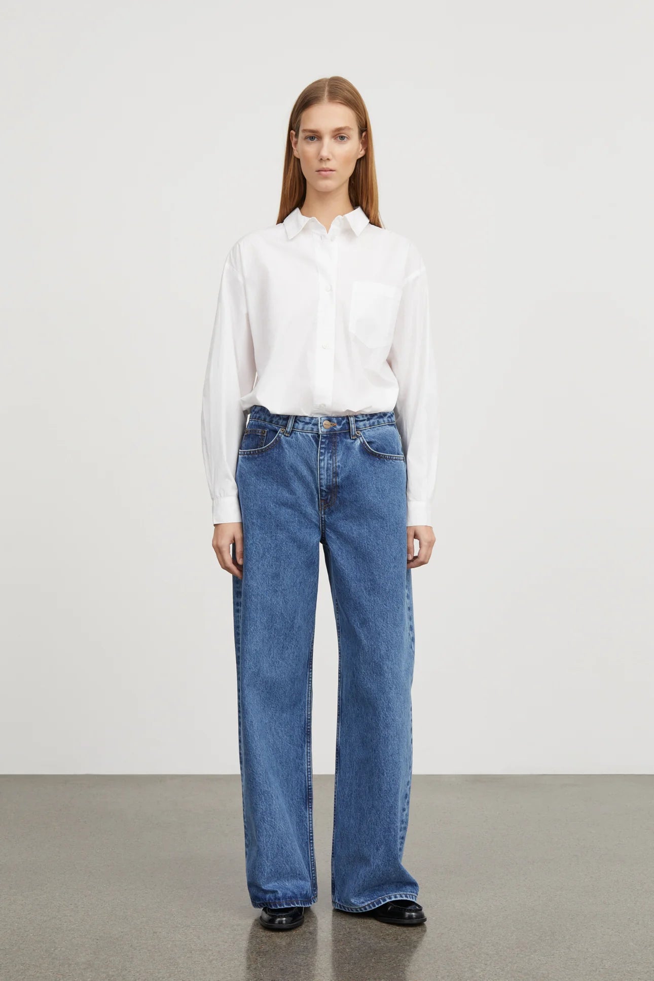 Skall Studio Willow Wide Jeans | Washed mid blue